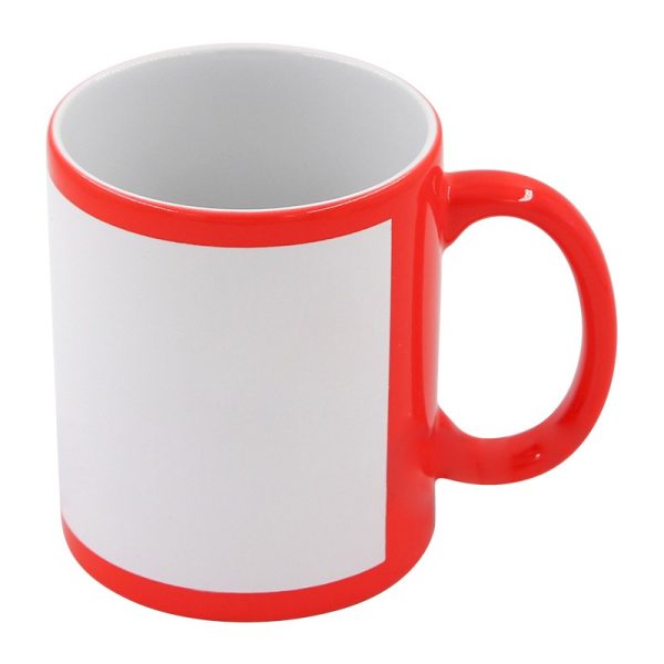 11 oz Glossy Fluorescent Red Mug with White Patch